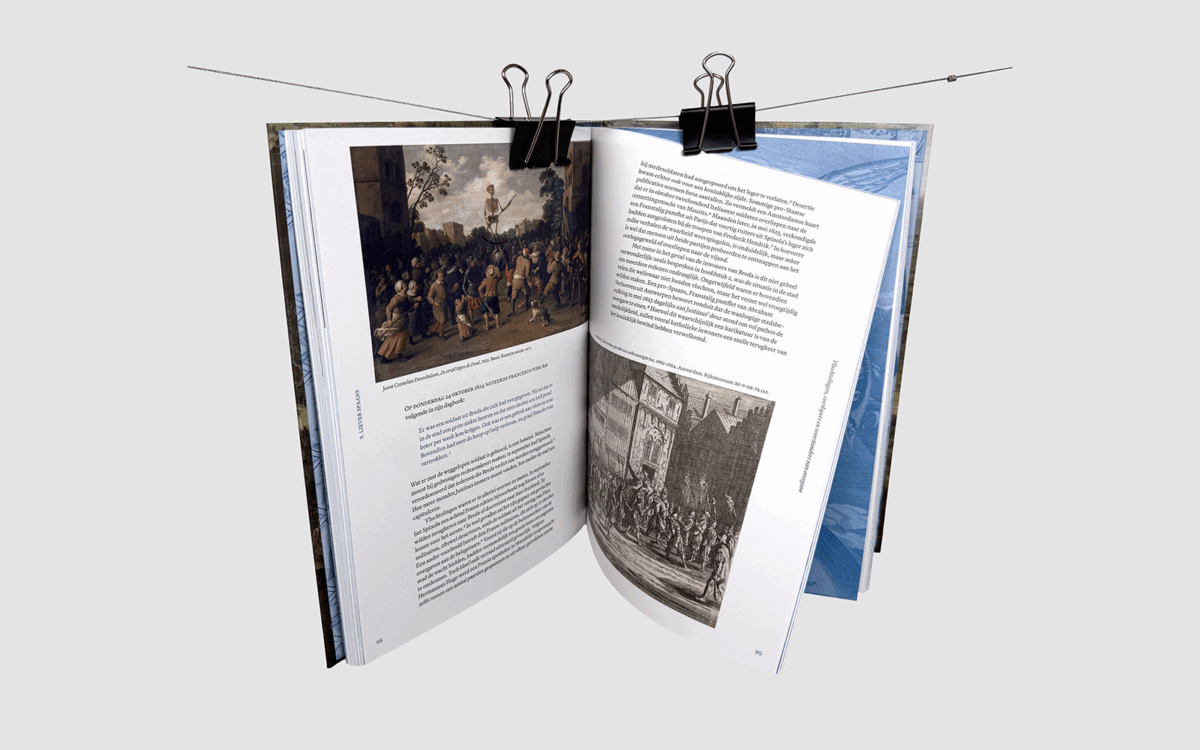 Het resultaat is een boek van 184 ritmische pagina’s in een elegante, klassieke vormgeving. De cover toont details uit het schilderij ‘Isabella Clara Eugenia bij Breda’ van Snayers uit 1628, en verbeeldt de vele perspectieven.